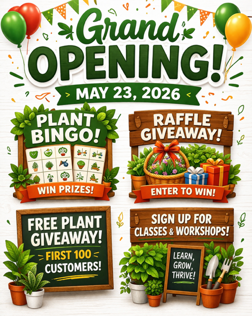 - Plant Bingo Games (free to play) scheduled @12noon, 2pm & 5pm with chances to win a plant